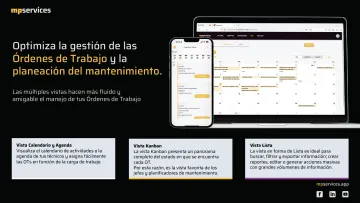 Contamos con dos soluciones: MP Service, creada especialmente para empresas que ofrecen servicios de mantenimiento que optimiza la comunicación entre clientes, coordinadores, planificadores de mantenimiento, apuntando a aumentar la productividad de tus técnicos en campo. Y MP Industries, una poderosa y amigable plataforma para la gestión de mantenimiento 100% en la nube que automatiza tus operaciones diarias y garantiza la disponibilidad y eficiencia de tus activos. Esta reduce el tiempo de inactividad de tus técnicos y cumple con las normativas de calidad.Nuestras soluciones son totalmente configurables y adaptables a las necesidades de tu negocio