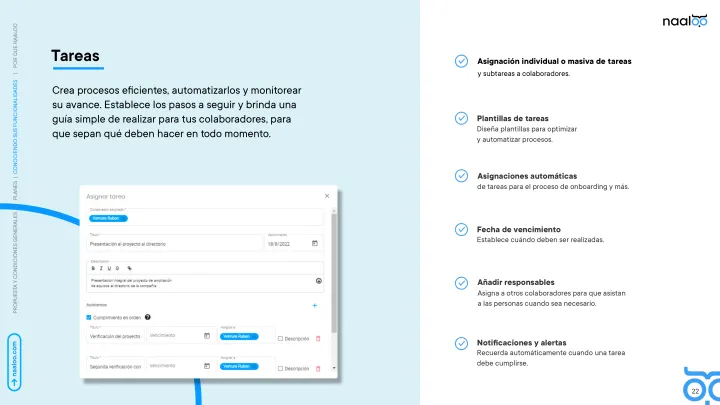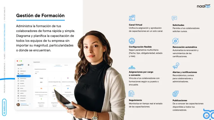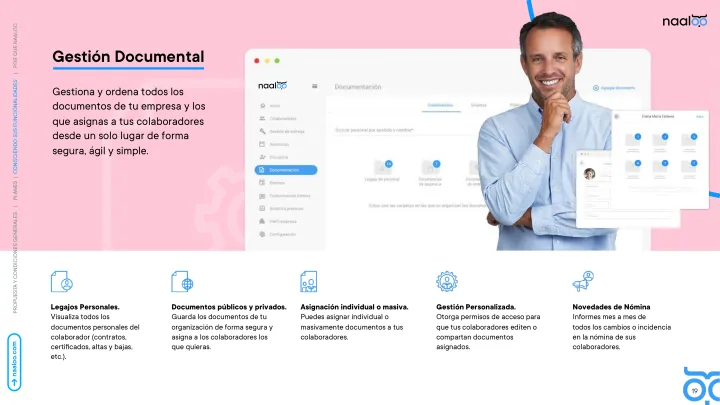 Naaloo es la solución cloud fácil e intuitiva para que las pymes puedan digitalizar su gestión de Recursos Humanos. A través de la automatización de tareas rutinarias, pemite ahorrar hasta un 60% de tiempos y costos, mejorar la comunicación interna y contar con estadísticas para tomar mejores decisiones. Naaloo optimiza y reduce a segundos tareas como: la firma de recibos de haberes, comunicaciones, vacaciones, ausencias, entregas, fichaje, reclutamiento y más. ¡Descubre hoy el partner ideal de tu compañía!