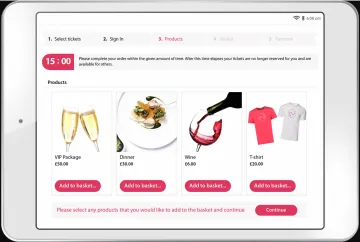 Aumente sus ganancias vendiendo productos adicionales junto con las entradas desde su propio sitio web.