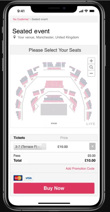 Optimice la experiencia de compra de su evento y permita que sus asistentes reserven y compren sus entradas o asientos directamente desde su sitio web y página de Facebook.