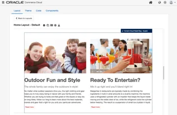 Oracle Commerce Cloud está diseñado para ayudar a los usuarios a llegar al mercado rápidamente y hacer crecer sus negocios con una solución de comercio en la nube ágil, atractiva y con todas las características.