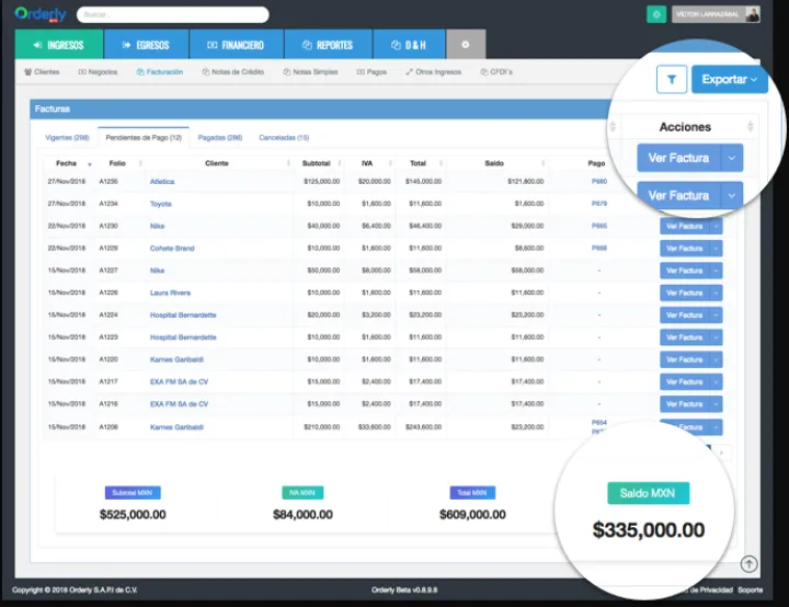 Ahora facturamos de forma rápida y sencilla. Emitimos complementos de pagos y cumplimos con todos los requerimientos del SAT sin problema. Tenemos absoluto control de todos nuestros ventas y gastos. Me gusta el hecho que podemos relacionar gastos directos a cada proyecto. El módulo de Bancos me da saldos actualizados para todas las cuentas.