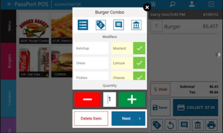 La pantalla táctil fácil de usar de Passport reduce el tiempo de capacitación del cajero y aumenta la precisión y velocidad del cajero.