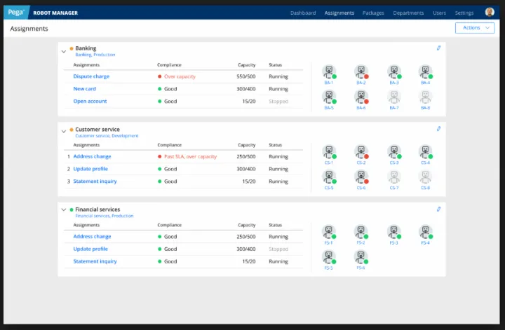 Necesita automatización dinámica como su negocio. La selección cuidadosa de funciones menos poderosas no es el camino hacia el éxito. La automatización de procesos digitales de extremo a extremo de Pega puede revolucionar las operaciones con una variedad de tecnologías, desde robots que automatizan las tareas de recopilación de datos hasta la gestión de casos y BPM. Pega Beneficios: