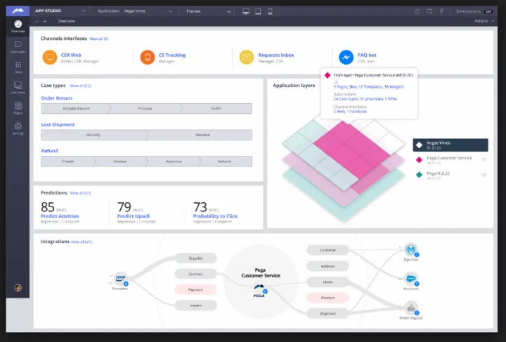 Pega apoya la transformación digital de su negocio con una plataforma integrada sin código. Desarrollar una aplicación, ya sea simple o compleja, no es una tarea tediosa. El enfoque integrado basado en modelos de Pega proporciona aplicaciones ágiles de clase empresarial con una experiencia de creación sin código.