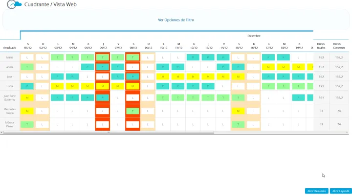 Obtenido el cuadrante, tu equipo de trabajo podrá interacturar contigo a través del portal del empleado. Cada persona podrá ver su cuadrante, , descargar sus nóminas, ver y modificar sus datos personales, acceder a un tablón de anuncios, ver el cuadrante de los compañeros para hacer intercambios de turno, etc..