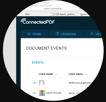 • Administración de documentos en ConnectedPDF: realice un seguimiento para ver quién abre el documento y qué hace, y notifique a los lectores sobre las nuevas actualizaciones.