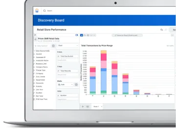 Genere ideas rápidamente con una interfaz de arrastrar y soltar. Colabore en paneles de descubrimiento para iteraciones más rápidas. Publique y comparta visualizaciones como informes de Workday.