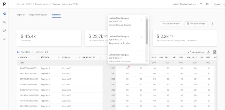 Funcionalidades de Plika FP&A