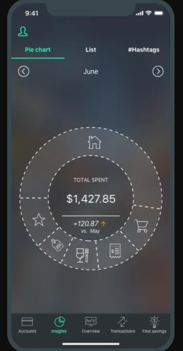 La plataforma es capaz de analizar los números para mostrar cuánto dinero tiene para gastar luego de haber reservado lo necesario para facturas, metas y necesidades. Usted podrá visualizar que gastos consumen demasiado del pastel. También podrá personalizar cada uno de sus informes con categorías personalizadas y hashtags.