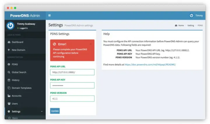PowerDNS es un sistema de servidor de nombres de dominio (DNS) de código abierto que se utiliza para resolver consultas de DNS y gestionar zonas de dominio. DNS es la tecnología que traduce los nombres de dominio legibles para los humanos en direcciones IP numéricas utilizadas por las computadoras para comunicarse en Internet.
