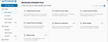 Dottypost es una herramienta basada en inteligencia artificial diseñada para los usuarios de LinkedIn. Ayuda a crear publicaciones y carruseles atractivos a partir de cortos, YouTube y blogs, gestiona la programación del contenido, ofrece información sobre las publicaciones virales y ayuda a gestionar el contenido, por lo que es ideal para profesionales y empresas que buscan mejorar su presencia y participación en LinkedIn.