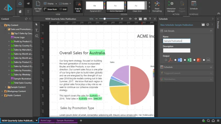 Pyramid BI presenta seis módulos analíticos distintos (Modelo, Formular, Descubrir, Ilustrar, Presente y Publicar), además de una Consola Administrativa y Sistema de Gestión de Contenidos, para ofrecer una experiencia analítica verdaderamente universal en todo el flujo de trabajo de análisis.