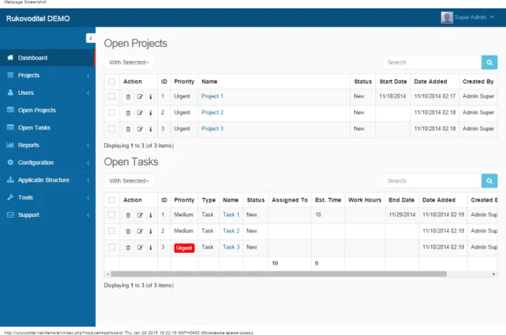 En la versión de código abierto Rukovoditel vendrá con un conjunto completo de herramientas necesarias. Puede crear un número ilimitado de entidades y campos y personalizar la apariencia de listas y formularios. Distribuya rápidamente derechos de acceso a grupos de usuarios e importe datos de archivos de Excel.