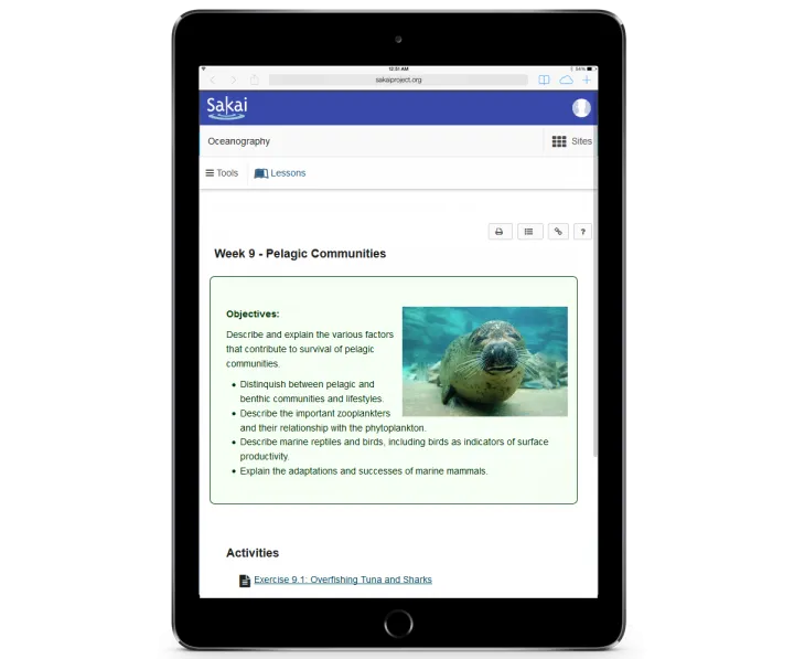 Con su arquitectura modular, Sakai permite personalizar roles de usuario, configurar espacios colaborativos y administrar contenido. El módulo Sakai Vault garantiza el archivo seguro de los cursos y la retención de datos.
