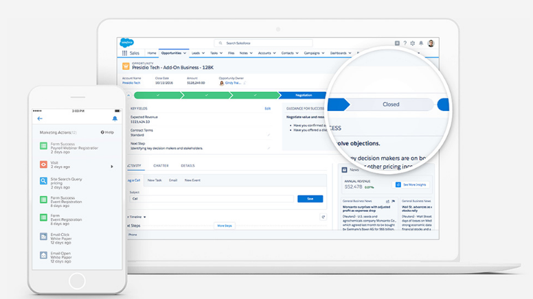 Salesforce CRM es la mayor plataforma de gestión de relaciones con clientes número del mercado, diseñada para ayudar a las empresas de todos los tamaños a atraer prospectos, cerrar más ventas y fidelizar clientes.