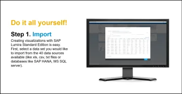 SAP Lumira cuenta con implementación local y en la nube, un lienzo de diseño sencillo y simple que fomenta la colaboración entre el negocio y las TI, análisis inclusivo de autoservicio en todas las líneas de negocios y rendimiento e información en tiempo real con una solución optimizada.
