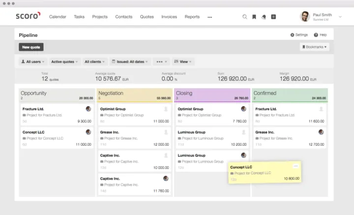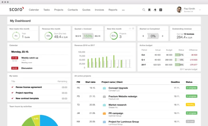 Scoro es el software de gestión empresarial todo en uno diseñado para reunir a su equipo, proyectos, ventas e informes.