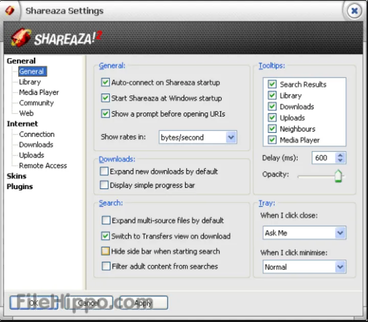 Pagar por el software P2P es una cosa del pasado! No hay necesidad de abrir su cartera o aguantar popups estúpidos de nuevo jamás: Shareaza es completamente gratis. Simplemente bájelo y úselo, sin cuerdas para sostenerlo.