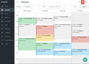 Programar citas. Shedul. es una herramienta simple y limpia con potentes funciones de programación de calendario que pueden manejar todas las reservas de citas de su salón. Las características incluyen reservas en línea, pos con pagos y aplicaciones móviles.