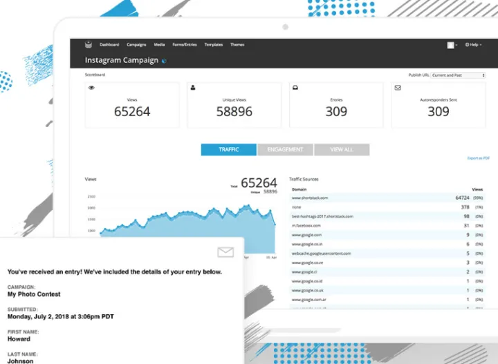 No limites el potencial de tu campaña. Incruste cualquier concurso, sorteo, prueba o promoción en su sitio web, blog o plataforma de comercio electrónico. Es tan fácil como copiar y pegar. Dirige el tráfico a tu sitio web y convierte a más participantes del concurso. Dirija a sus visitantes paso a paso desde el clic hasta el compromiso mostrando su campaña como una ventana emergente.