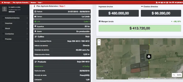 Realizá tus planificaciones de cultivos y obtené el margen bruto. Podrás modificar distintas variables y medir como afectará a tu ganancia, como el valor de la divisa, valor del rinde, costos de insumos… Al fin de la campaña observá cual fue el cultivo que más rindió.