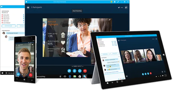 Reuniones en línea profesionales para las empresas con Skype Empresarial Fácil de programar y de unirse. Eficaces herramientas de colaboración. Creado por Microsoft