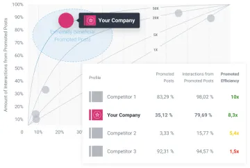 Con Socialbakers mida y compare el rendimiento de las redes sociales. Mida el desempeño de su negocio a través de los canales sociales. Obtenga más información de sus clientes, obtenga información valiosa sobre la industria y las actividades de la competencia. Use AI para optimizar su estrategia orgánica y de pago. Promocione solo su contenido de mejor rendimiento y publíquelo en el momento adecuado para obtener los mejores resultados de su gasto publicitario.