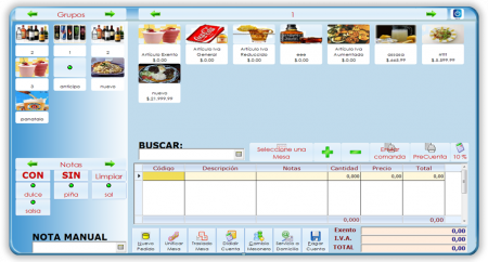 Es practico y sencillo para manejar la administración de su restaurant. Incorpora los módulos de punto de venta, caja, costos, materias primas, facturación, inventarios, recetas. Imprime precuentas, cuentas y las comandas (ordenes), pudiendo seleccionar el lugar donde quieres que se imprima, agilizando la preparación de alimentos y disminuyendo el trafico de mesoneros en el área de la cocina.