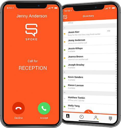 Spoke Phone: Convierta los teléfonos móviles en el sistema telefónico de su empresa. Descubra un nuevo tipo de sistema de telefonía comercial creado para un mundo móvil. Todas las características tradicionales del sistema telefónico de negocios son fáciles de usar en teléfonos móviles, con características únicas para las personas que están fuera.