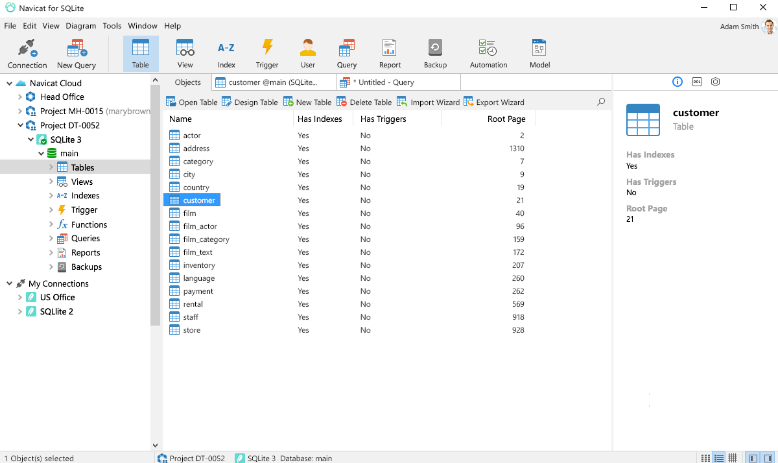 SQLite Gestión de Datos es un motor de base de datos SQL incorporado. A diferencia de la mayoría de las otras bases de datos SQL, SQLite no tiene un proceso de servidor por separado. SQLite lee y escribe directamente en archivos de disco ordinarios. Una base de datos SQL completa con múltiples tablas, índices, disparadores y vistas, está contenida en un solo archivo de disco. El formato de archivo de la base de datos es multiplataforma: puede copiar libremente una base de datos entre sistemas de 32 bits y de 64 bits o entre arquitecturas big-endian y little-endian . Estas características hacen que SQLite sea una opción popular como formato de archivo de aplicación . Los archivos de base de datos SQLite son un formato de almacenamiento recomendado por la Biblioteca del Congreso de EE. UU. Piense en SQLite no como un reemplazo para Oraclepero como reemplazo de fopen