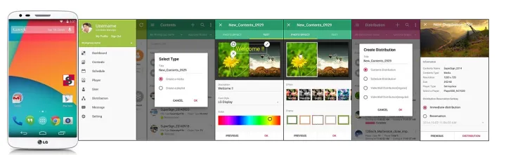 SuperSign M es un software de gestión de contenidos de cartelería móvil cuyas funciones básicas son edición, programación y distribución del contenido a través del móvil, el editor SuperSign M es capáz de crear contenido de imagen con una interfaz simple de usuario y con estilo de carga de fotos SNS. Es un software sencillo, original, fácil de aprender y novedoso que cuenta con el respaldo de LG Business Solutions.