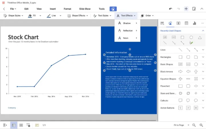 Con Thinkfree Office Neo tendrás una alternativa a Microsoft Office con total compatibilidad,herramientas de nivel profesional con una interfaz de usuario familiar,con opciones de licencia atractivas y flexibles,cree, edite y comparta documentos, hojas de cálculo y presentaciones de calidad profesional.