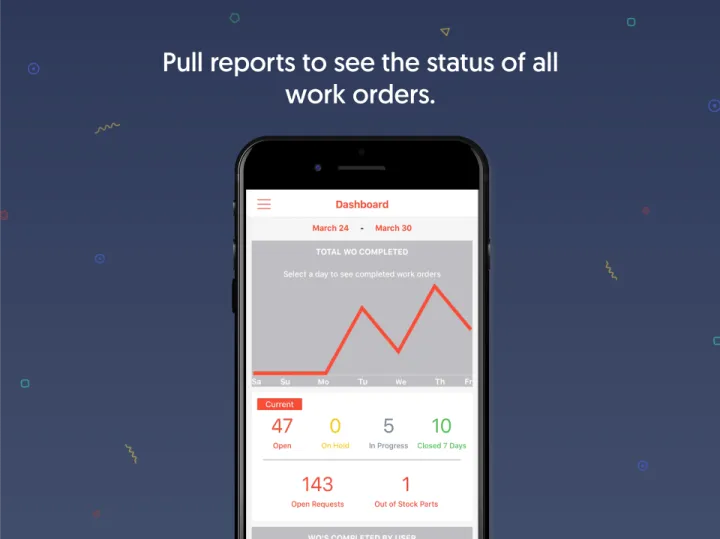 Controle el estado de sus ubicaciones, activos, equipos, piezas e inventario, todo en un solo lugar. Configure alertas para cuando sus piezas o inventario estén bajos y realice pedidos de compra de nuevas existencias, todo desde la aplicación.