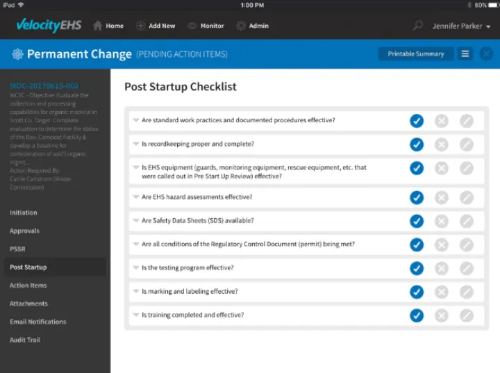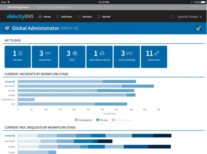 VelocityEHS cuenta con una interfaz de usuario que admite 16 idiomas, y la solución proporciona la capacidad de rastrear y administrar un número de acciones correctivas en cada módulo en un solo lugar, esto incluye las acciones que guardan relación con incidentes, auditoría e inspecciones.