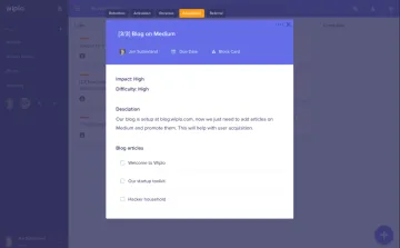 Su flujo de trabajo personalizado en una hermosa interfaz. Mantenga su equipo actualizado y trabaje de manera más inteligente. Wiplo ayuda a miles de equipos y empresas a visualizar su flujo de trabajo y realizar tareas. Ideal para equipos de producto con reuniones diarias stand up.