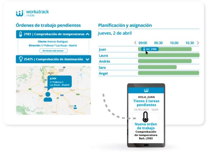 Asigna cada tarea al trabajador más adecuado y adapta de forma continua la planificación a los sucesos del día a día, adelántandote a los problemas y toma la decisión correcta estés donde estés.
