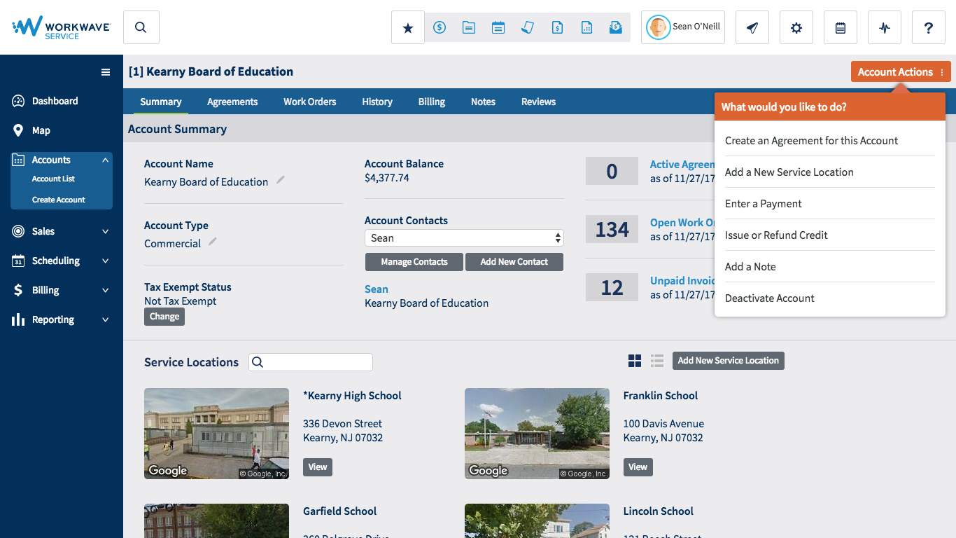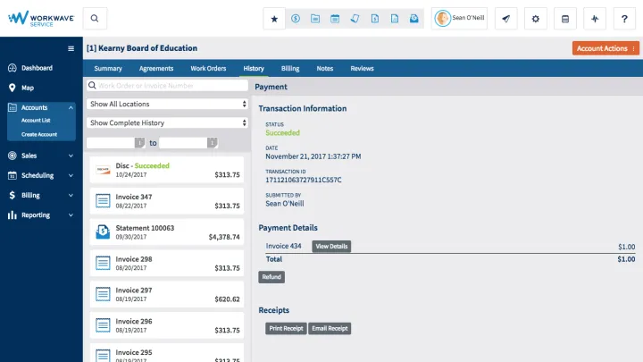 Desde la programación de trabajos hasta el envío de técnicos o el pago más rápido, WorkWave Service lo ayuda a optimizar su negocio y brindar experiencias de servicio más excepcionales. Acceda a información detallada de clientes y órdenes de trabajo en segundos, ajuste su flujo de caja con opciones flexibles de facturación y pago.