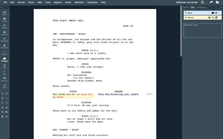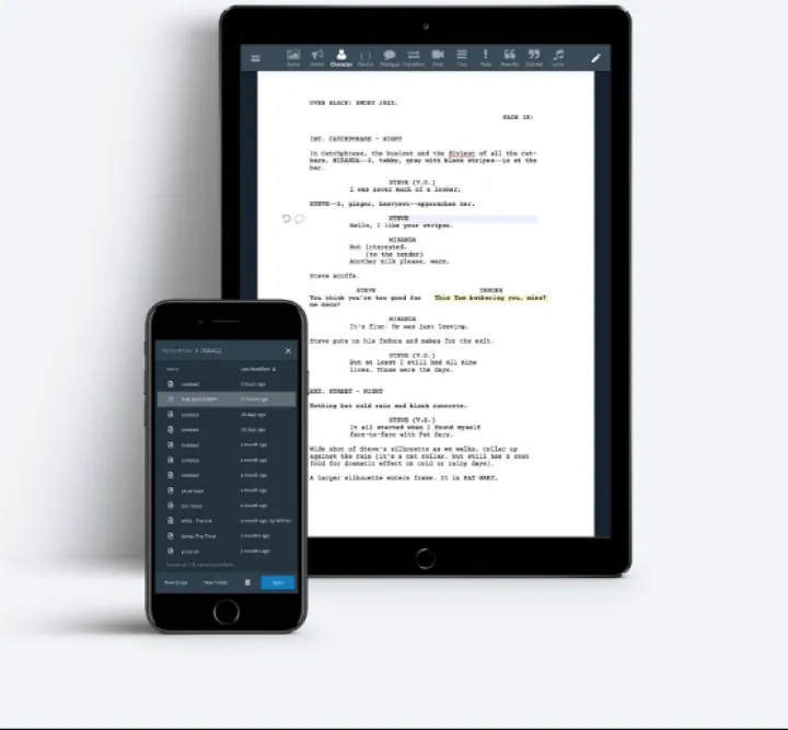 La aplicación de WriterDuet ahorra todo el proceso de pensamiento. Además de eso, la aplicación es tan rápida que corren en círculos alrededor del líder de la industria de guiones.