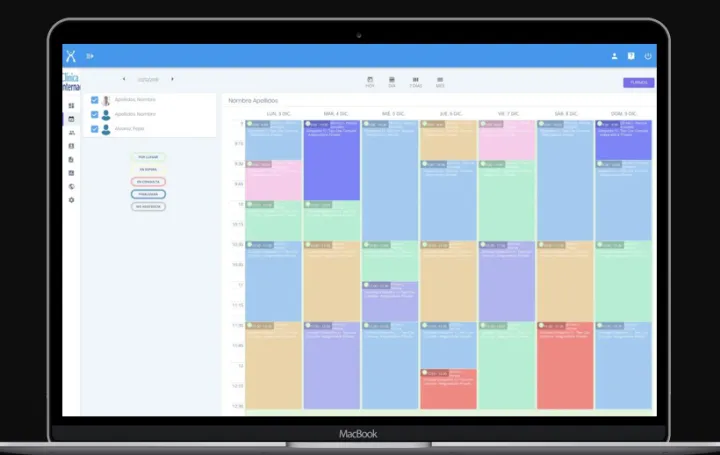 - Cambia rápidamente entre la visión de toda la clínica a la de un solo profesional.