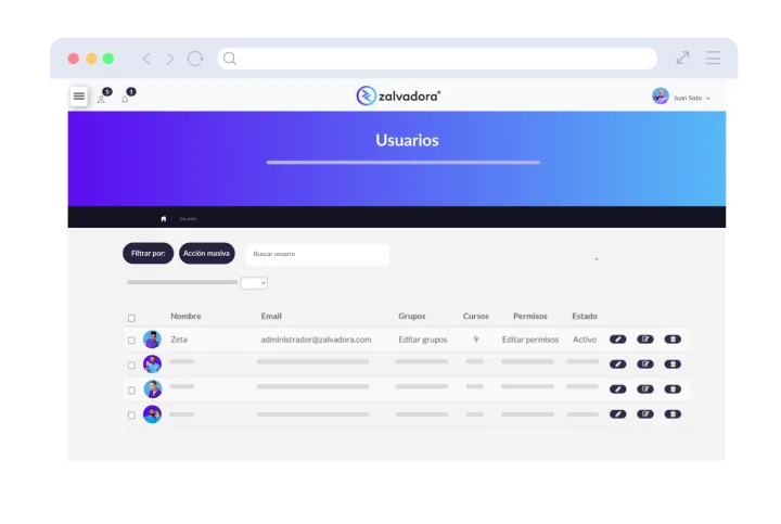 Funcionalidades de Zalvadora LMS LXP
