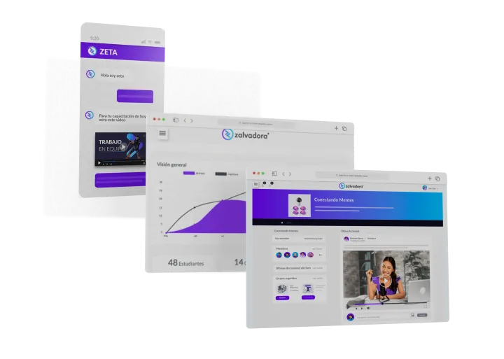 Zalvadora es unLMS y LXP, ideal para formar y capacitar a colaboradores y diferentes grupos de interés. Nuestra plataforma incluye todas las herramientas LMS estándar, además de nuestra red social de elearning (Learning Communities), un módulo de E-Commerce para vender/monetizar cursos, gestión Multiempresa, así como integraciones a la mayoría de las Plataformas de Business Intelligence, CRM, Plataformas de Pago y otros sistemas que nuestro cliente requiere para conectarse con nuestro LXP.